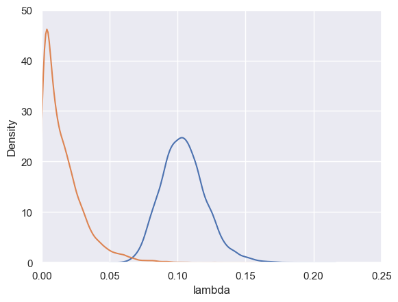 sns.kdeplot(data=samples, x="lambda", weights=weights)